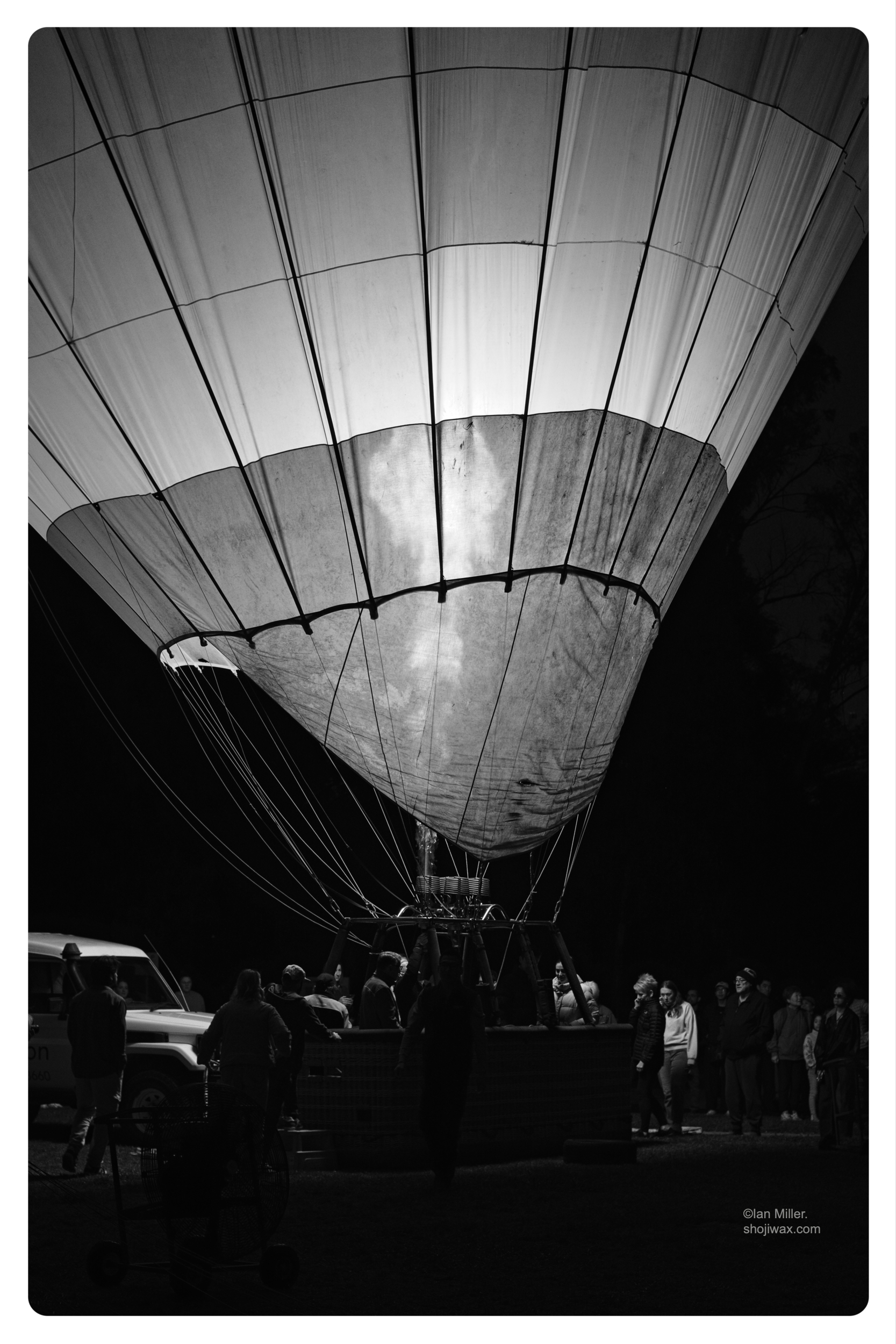 The balloon remains semi-inflated, reclined out along the grassy field and reminding me of a giant washed up jellyfish. The deafening drone of the industrial-sized fans used to inflate the balloon’s envelope finally stops.