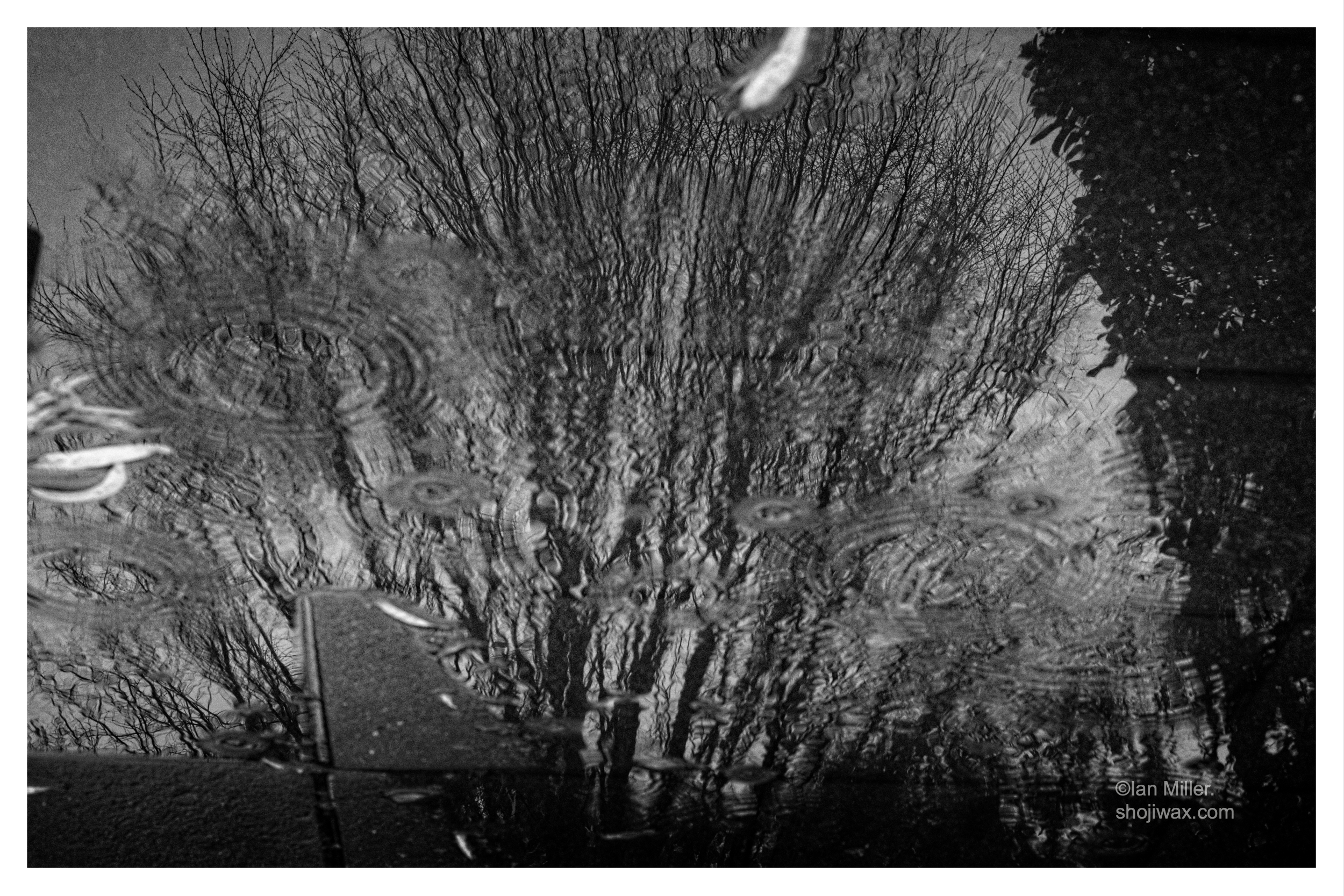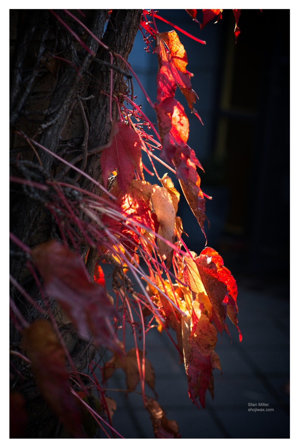 The last fire of Autumn drops its ember leaves.