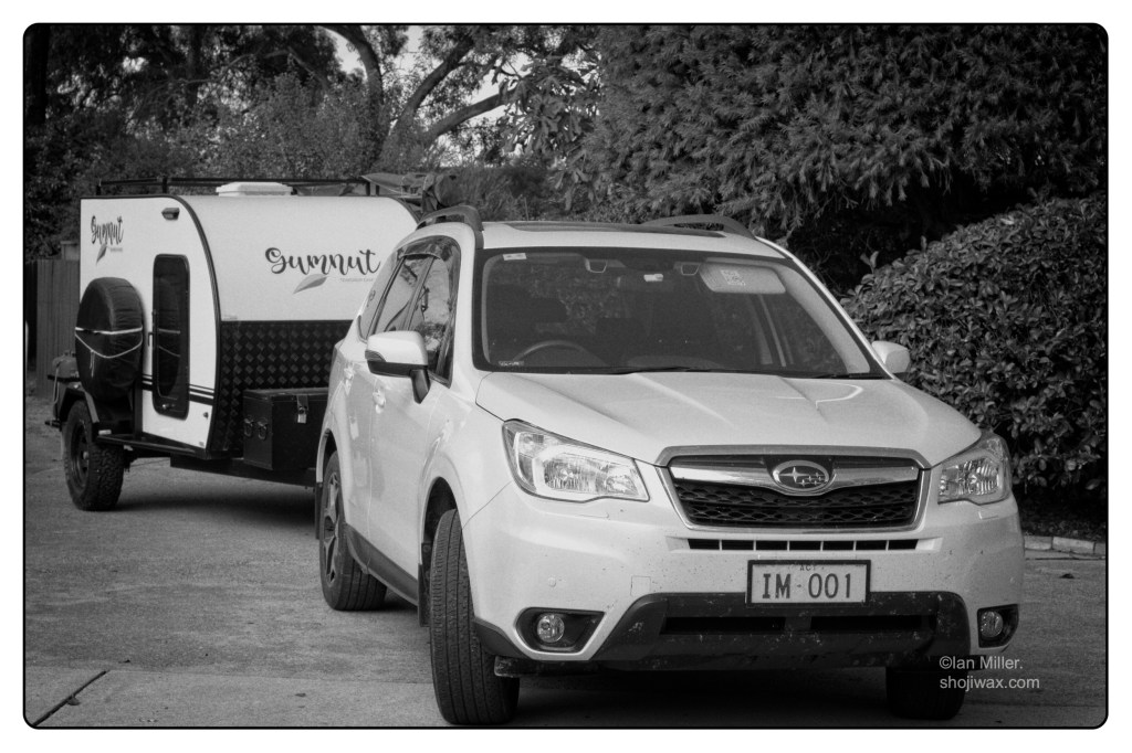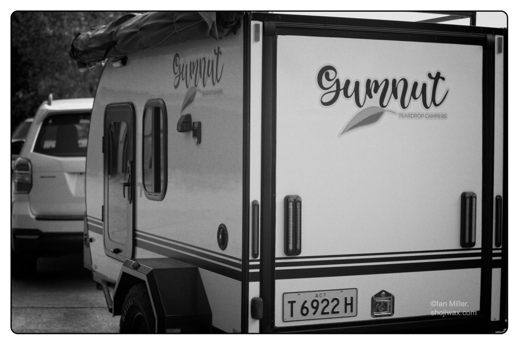 Inside is a double bed and some cupboards; at the rear, she opens up with a simple but utilitarian kitchen (including sink, stove and fridge). That is about it. A wrap-around awning increases the living space a little, but she is snug and minimal.